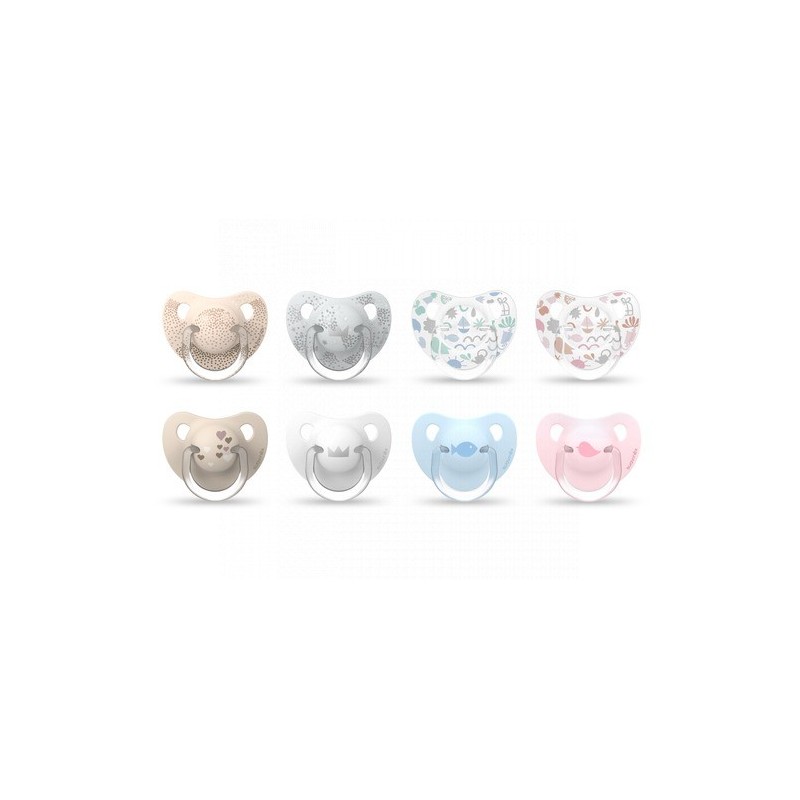 Chupetes para bebés de 0 a 6 meses con tetinas anatómicas de silicona.