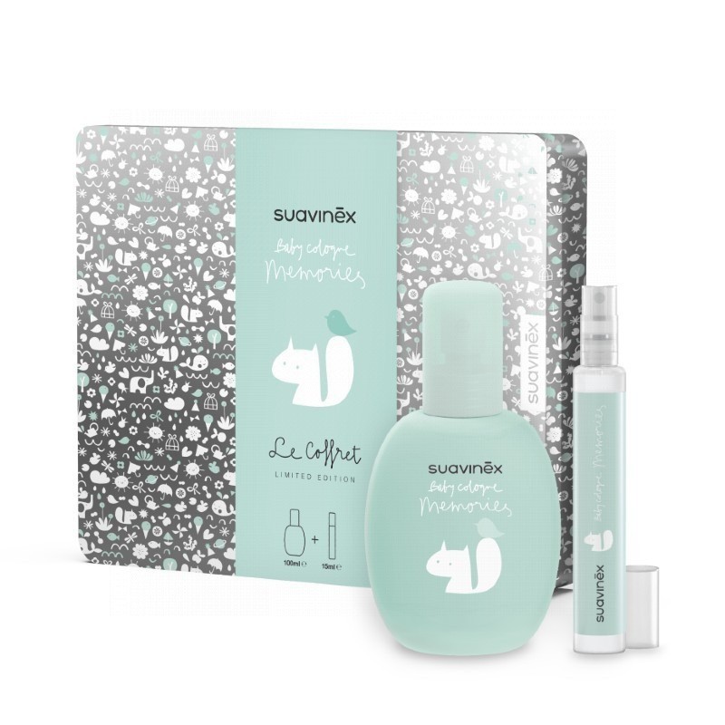 Cofre regalo metálico con diseño Memories que contiene la nueva Baby Cologne Memories 100ml + vial 15ml para llevar en el bolso.