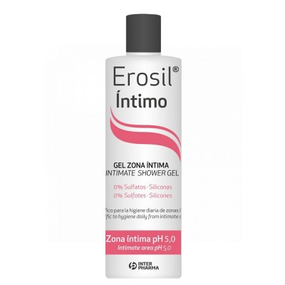 EROSIL® Gel Íntimo es un gel íntimo suave e hipoalergénico sin jabón. Su pH es ligeramente ácido (pH5,0) adaptándose a las necesidades de la zona íntima para proteger la flora bacteriana íntima. Está indicado para aliviar irritaciones íntimas generales, durante la menstruación, para molestias íntimas después del parto o tras relaciones íntimas. Apto también para la delicada higiene íntima infantil.