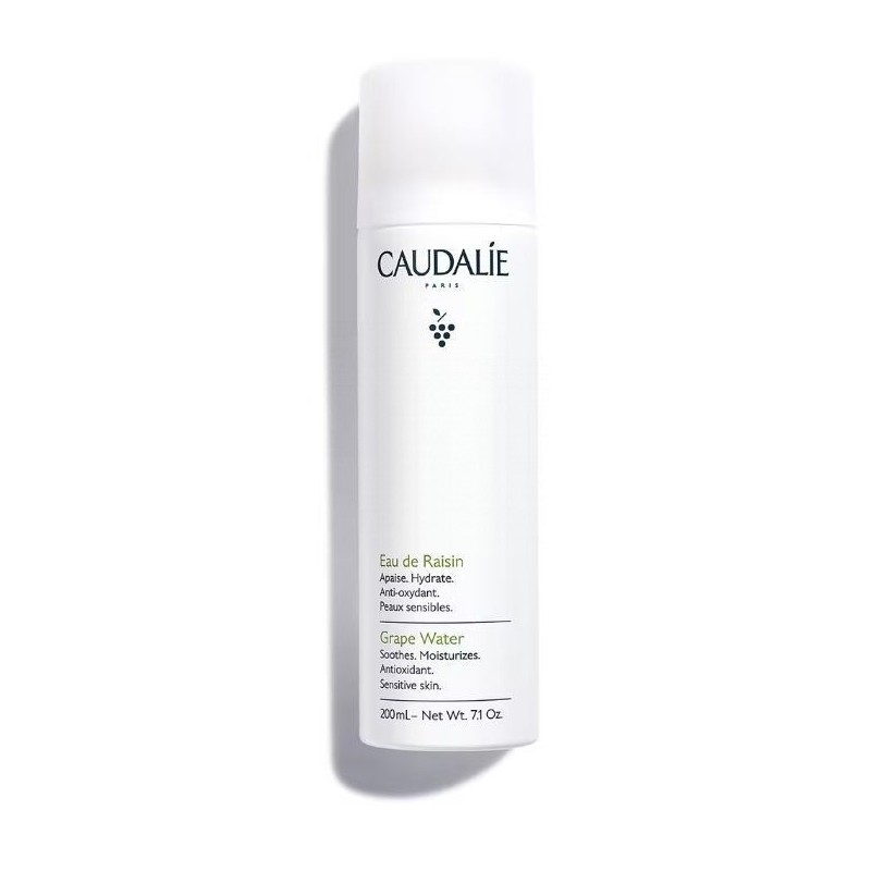 Extraída de uvas biológicas durante las vendimias, el Agua de Uva es un producto emblemático de Caudalie. Esta agua 100% vegetal tiene propiedades hidratantes y calmantes. Es la aliada diaria de las pieles sensibles.