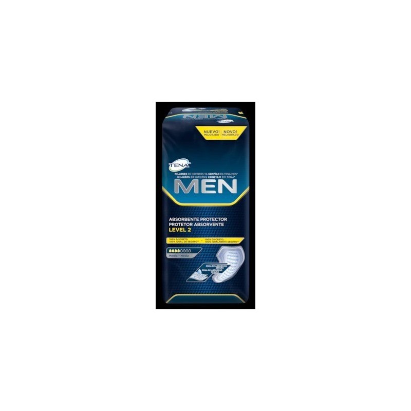 A la hora de ofrecer protección a los hombres ante las pérdidas de orina y la incontinencia, los profesionales sanitarios recomiendan TENA Men protector absorbente level 2. Su núcleo absorbente con una zona de absorción mejorada aumenta la seguridad ante las pérdidas y atrapa el olor y la humedad, mientras que su nuevo diseño masculino mucho más fino en forma de copa garantiza que no se mueva en la ropa interior. Elige la solución favorita de millones de hombres de todas las edades: TENA Men protector absorbente level 2.