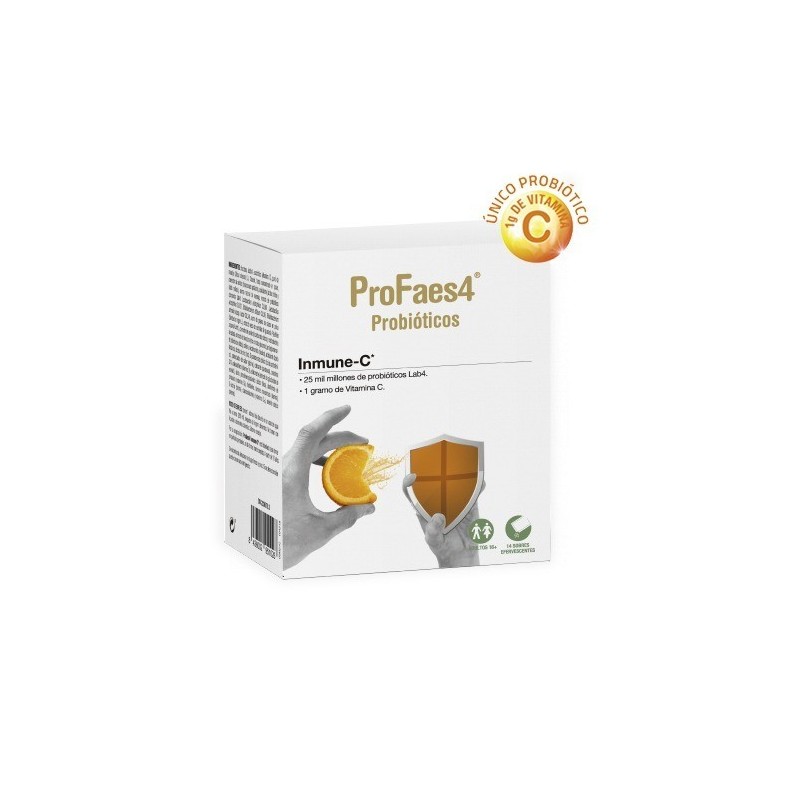La vitamina C, B12, el zinc y el selenio contribuyen al funcionamiento normal del sistema inmunitario. ProFaes4® INMUNE-C es una combinación de probióticos Lab4 con 1 gramo de vitamina C, vitamina D, vitaminas del grupo B, zinc, selenio, Coenzima Q10, extracto de guaraná, cafeína, beta-glucanos y zumo de saúco. Gracias a su contenido en componentes que actúan de forma sinérgica, como la vitamina C, B12, zinc y selenio contribuyen al funcionamiento normal del sistema inmunitario.