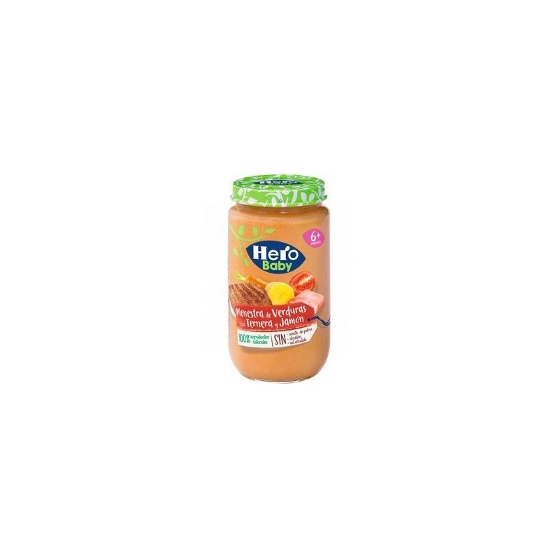 Estos tarritos de Hero Baby ofrecen una deliciosa menestra de verduras con jamón y ternera, cuidadosamente elaborada con ingredientes naturales. Diseñados para bebés a partir de los 6 meses, mantienen la frescura y calidad al ser envasados al vacío, sin necesidad de añadir colorantes ni conservantes. Una opción nutritiva y casera para la alimentación de tu pequeño.