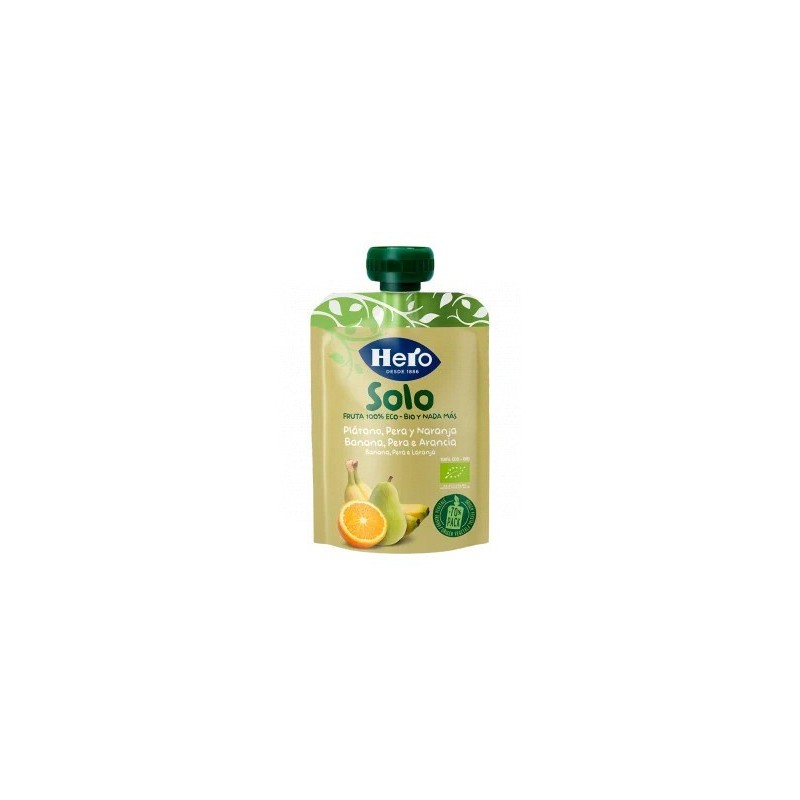 Las bolsitas de plátano, pera y naranja de Hero Solo están elaboradas con ingredientes 100% ecológicos para bebés a partir de 4 meses. Disfruta de estas deliciosas combinaciones de fruta y hortalizas ecológicas para tomar en cualquier lugar gracias a su práctico envase que no necesita frío.