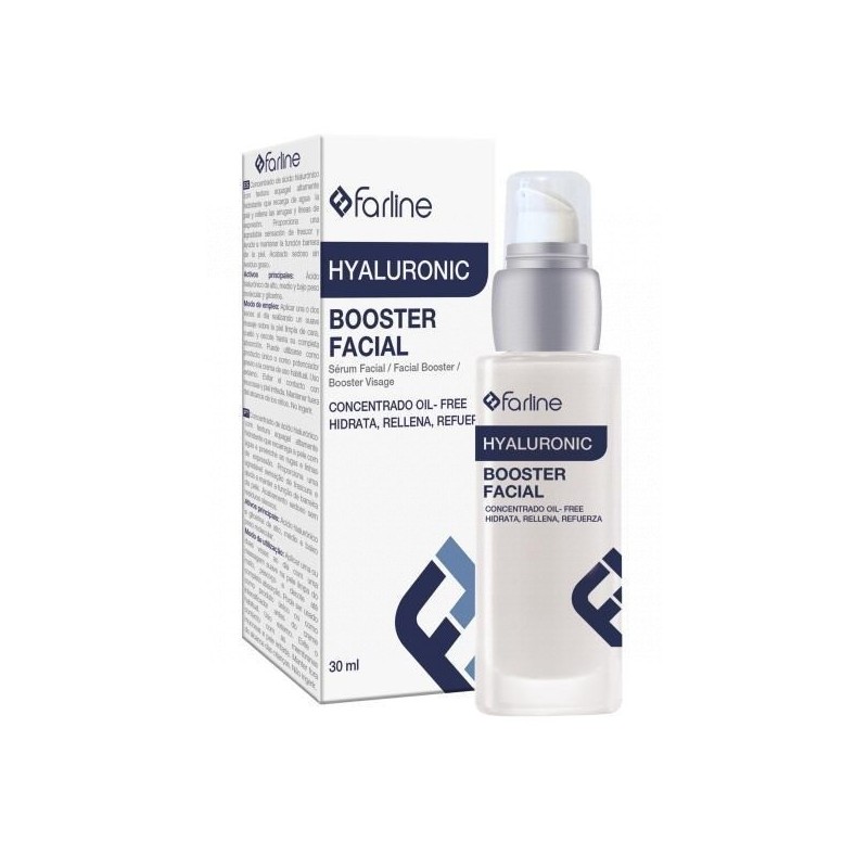 Hyaluronic booster facial es un concentrado de ácido hialurónico con textura aquagel altamente hidratante que recarga de agua la piel y rellena las arrugas y las líneas de expresión. Proporciona una agradable sensación de frescor y ayuda a mantener la función barrera de la piel. Puede utilizarse como producto único o como potenciador previo a la crema farline de uso habitual.