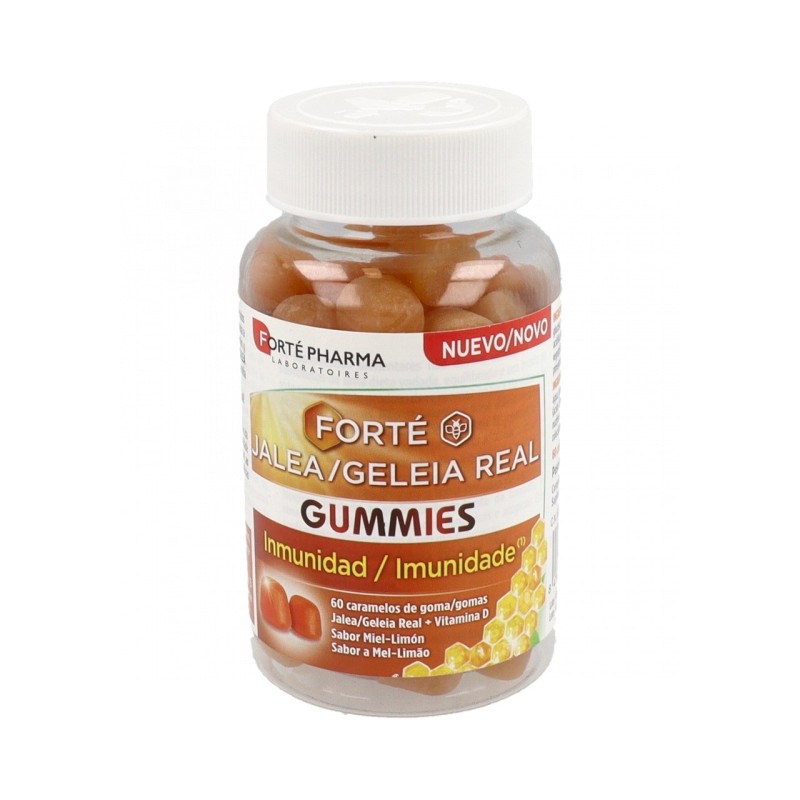 Forte Jalea Real Gummies son caramelos de goma deliciosos y aptos para toda la familia, elaborados con jalea real tipo 1 y vitamina D para fortalecer el sistema inmunitario.
